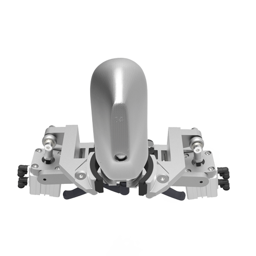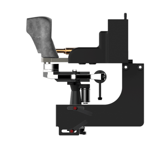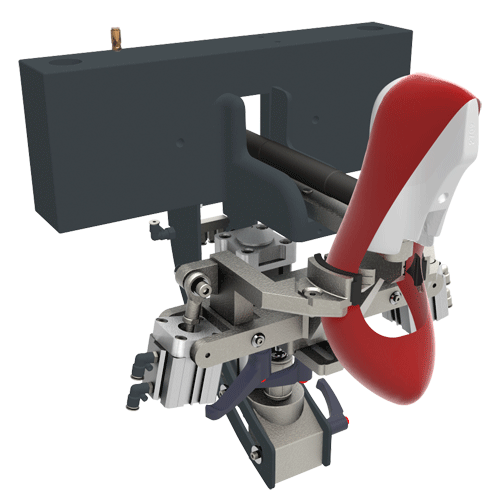 Equipada com almofadas rigidas e placas integradas, com posto quente inclinável com saída automática do molde, pinças individuais ajustáveis, em inclinação e profundidade, cabeça rotativa do posto frio.