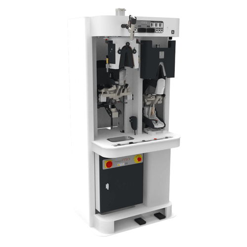 Máquina versátil de moldar contrafortes com um posto de quente e um posto de frio.